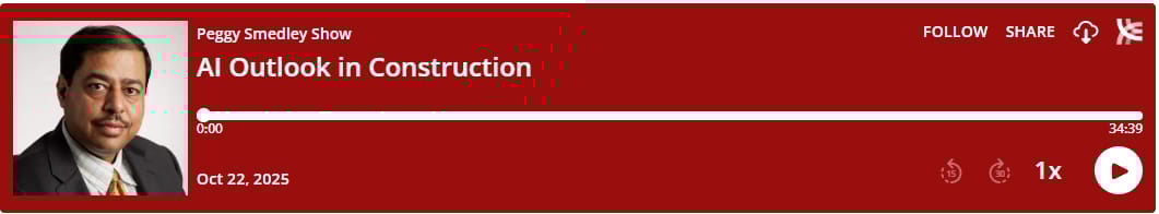 Peggy Smedley and Anil Sawhney, head of sustainability, RICS (Royal Institution of Chartered Surveyors), and Kay Pitman, sustainability analyst, RICS, talk about the highlights from a new AI (artificial intelligence) and construction report 2025, current rates of adoption, blockers to adoption, and the outlook. He says the report was an outcome from conversations and a survey from members who are at the forefront of technology. Pitman says the technology is rapidly evolving, and AI has the potential to reshape the industry.
