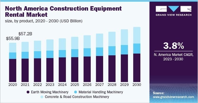 Take the overall global construction equipment market as projected by Grandview Research. Its prediction is the market size will reach almost $162 billion by 2030, showing a 3.9% CAGR (compound annual growth rate) from 2023 to 2030.The investments being made by the U.S. government, as well as many other nations, in the development of public infrastructure is one of the key factors anticipated to fuel the growth. And as population figures increase, there is predicted to be a corresponding demand for residential and commercial construction activity, as well.