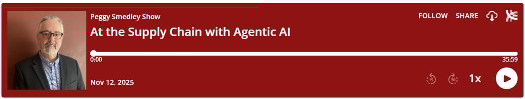 Peggy Smedley and David Esposito, industry advisor for logistics, transportation, and supply chain, Microsoft Manufacturing and Mobility, talk about how we can leverage AI (artificial intelligence) agents to help in the supply chain. He says since the pandemic it has been nothing but disruption in this industry. There is overcapacity, oversupply, and tariff uncertainties, just to name a few.