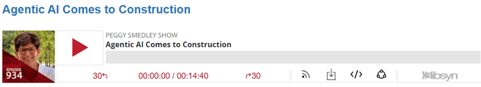 Peggy digs into agentic AI (artificial intelligence) and its transformative potential for the construction industry. She explores how this next evolution of AI—capable of autonomous reasoning and decision-making—can address some of the industry’s most pressing challenges from labor shortages to supply-chain complexity.